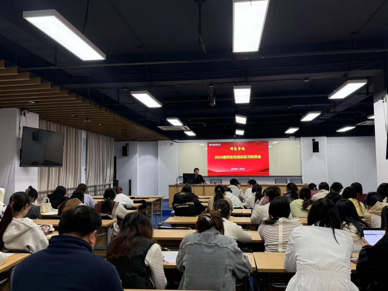 2025年11月6日,师范学院在瘦西湖校区图书馆1215会议室顺利召开2026届毕业生实习动员大会。2023级学前教育、托育管理与服务专业全体学生及实训基地相关指导教师共同参会。