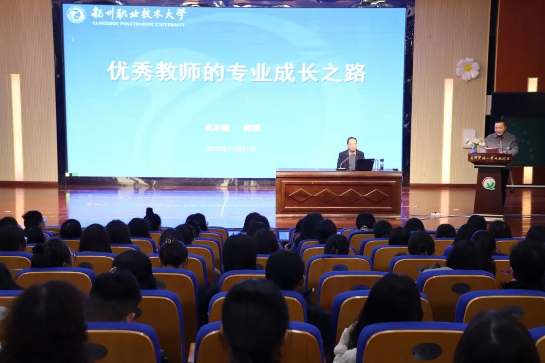 签约仪式结束后,师范学院副院长、附属小学副校长金本能教授为高邮市实验小学和实验幼儿园近百名教师做了题为《优秀教师的专业成长之路》的学术讲座。