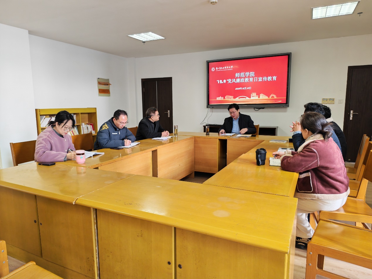 为深入贯彻落实全面从严治党要求,进一步增强党员干部和关键岗位人员的廉洁自律意识和风险防范能力,营造风清气正的育人环境。师范学院党总支于12月10日组织召开了廉政集体谈话暨警示教育会议,会议由党总支书记石继华主持,全体党总支委员参加了会议。