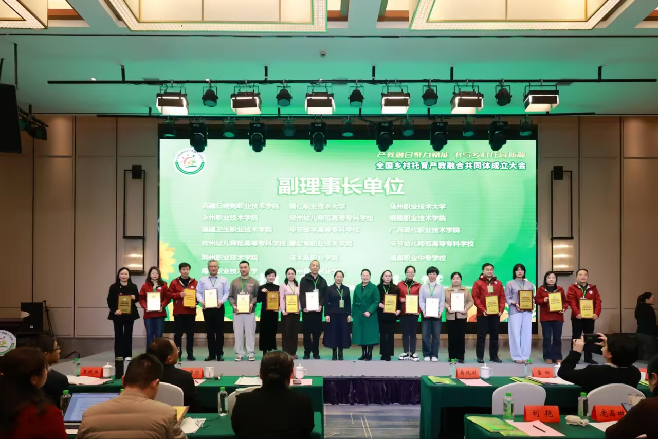 扬州职业技术大学师范学院长期深耕学前教育、婴幼儿托育服务与管理专业建设,主动对接国家“一老一小”战略,依托托幼数创产业学院、博士工作室与附属幼儿园等平台,与地方卫健部门、托育机构、幼儿园深度合作,开发托育特色课程,开展婴幼儿照护技能培训,推进托育服务标准化与数字化建设,为区域乡村托育发展输送了大批高素质技术技能人才。此次当选副理事长单位,既是对学院办学实力与社会服务能力的高度认可,也赋予学院在全国乡村托育产教融合中发挥示范引领、标准输出与资源整合的重要使命。