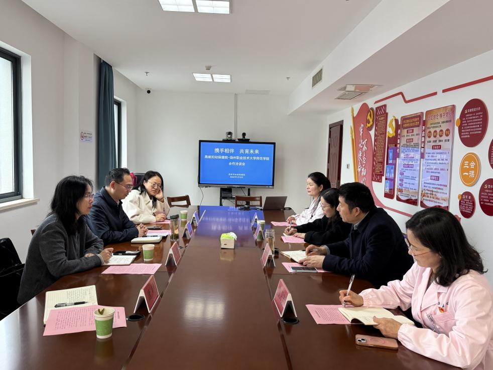 3月30日,扬州职业技术大学师范学院与高邮市妇幼保健院举办“携手相伴,共育未来”合作洽谈会,深化产教融合、校企协同育人,助力学院相关专业建设高质量发展。