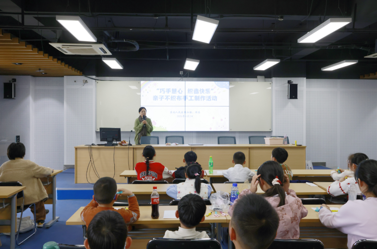 春光明媚,暖意融融。为丰富春假期间职工亲子生活,助力医护职工家庭共度温馨时光,受苏北人民医院团委、妇联委托,扬州职业技术大学师范学院于2026年4月2日在瘦西湖校区图书馆1215会议室,成功举办“巧手慧心、织造快乐”亲子不织布手工培训班,为苏北人民医院职工家庭带来一场充满创意与温情的手作体验。